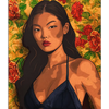 Asian Woman Floral Portrait - Poster